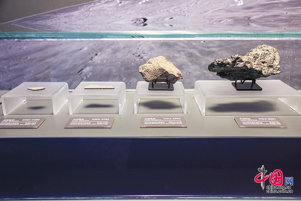 12月28日,“問月——中國探月工程嫦娥五號(hào)月球樣品展”在北京天文館B館一層展廳拉開帷幕。圖為現(xiàn)場展出的西北非月球隕石。中國網(wǎng)記者 倫曉璇 攝