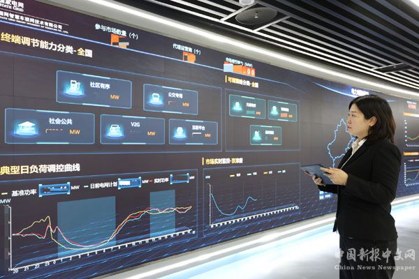 工作人員通過國家電網(wǎng)智慧車聯(lián)網(wǎng)平臺監(jiān)測負(fù)荷聚合調(diào)控情況。受訪者供圖