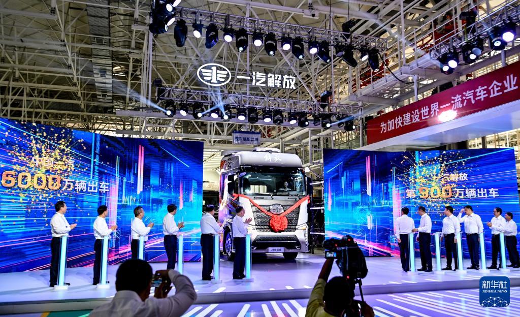 7月16日,中國(guó)一汽第6000萬(wàn)輛汽車暨第900萬(wàn)輛解放牌卡車駛下生產(chǎn)線。