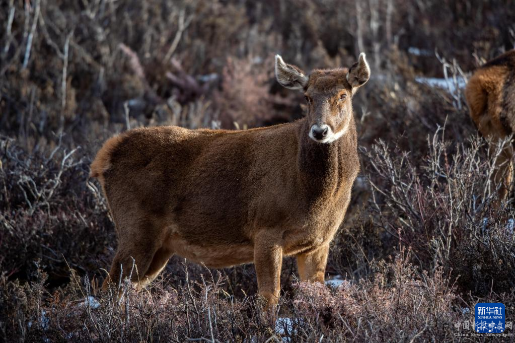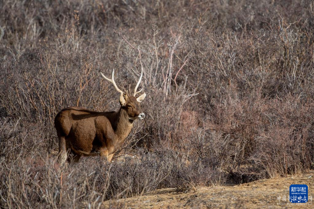 這是在西藏山南市桑日縣拍攝的馬鹿(1月14日攝)。