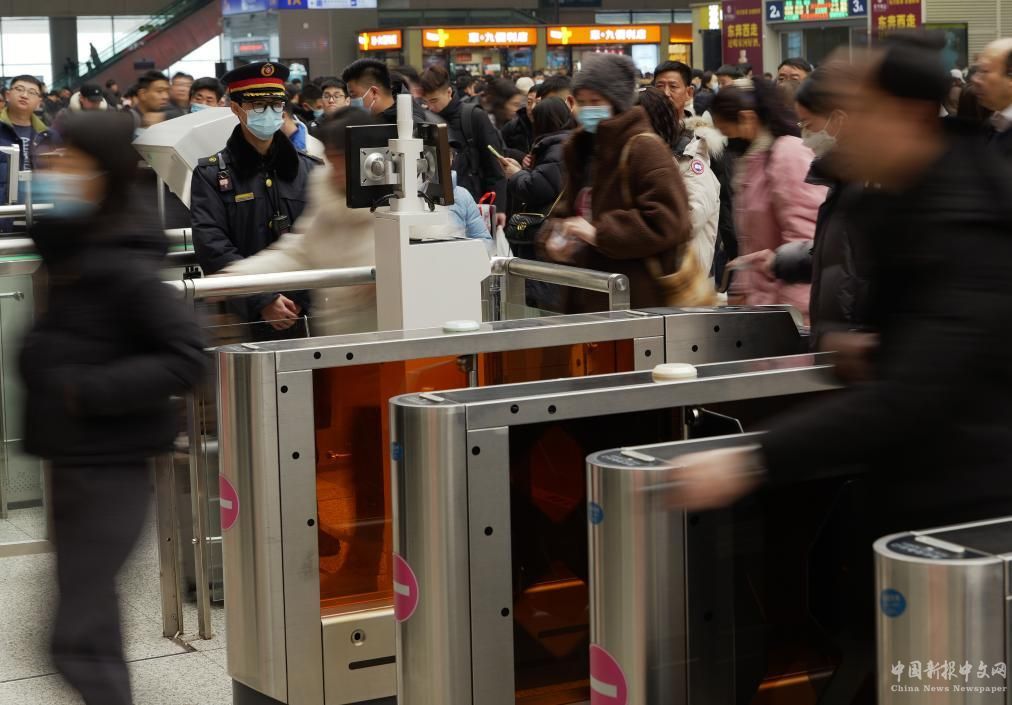 1月17日,旅客在鄭州東站檢票候車。新華社記者 李嘉南 攝