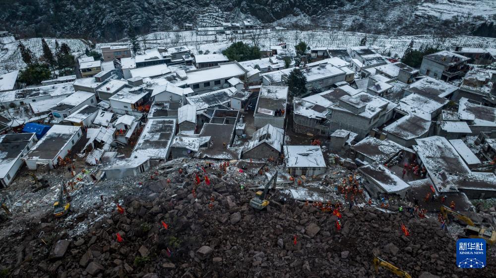 1月22日在云南省昭通市鎮(zhèn)雄縣塘房鎮(zhèn)涼水村拍攝的救援現(xiàn)場。新華社發(fā)