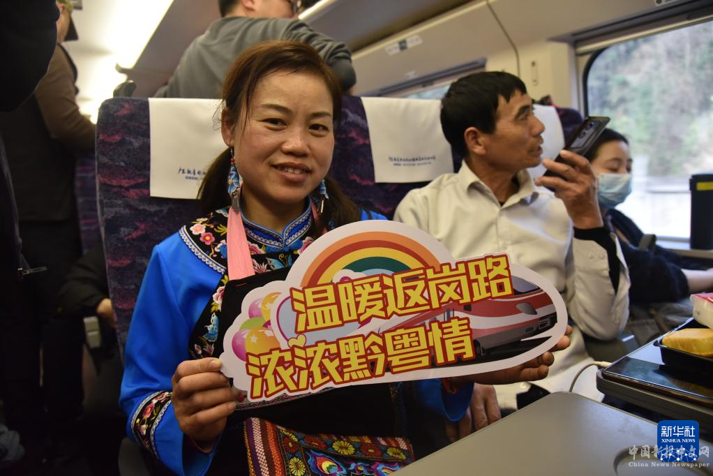 據(jù)了解,這趟列車是貴州省黔南州2024年新春期間組織的第五趟免費(fèi)專列。黔南州作為貴州外出務(wù)工人口較多的市州,今年來提前安排部署,動(dòng)員當(dāng)?shù)厝松绮块T、鄉(xiāng)鎮(zhèn)(街道)以及村寨(社區(qū))工作人員摸排群眾返崗意愿和出行計(jì)劃,自今年大年初三開始陸續(xù)組織免費(fèi)務(wù)工專列、大巴車等,為當(dāng)?shù)?萬多名群眾提供免費(fèi)返崗交通服務(wù)。