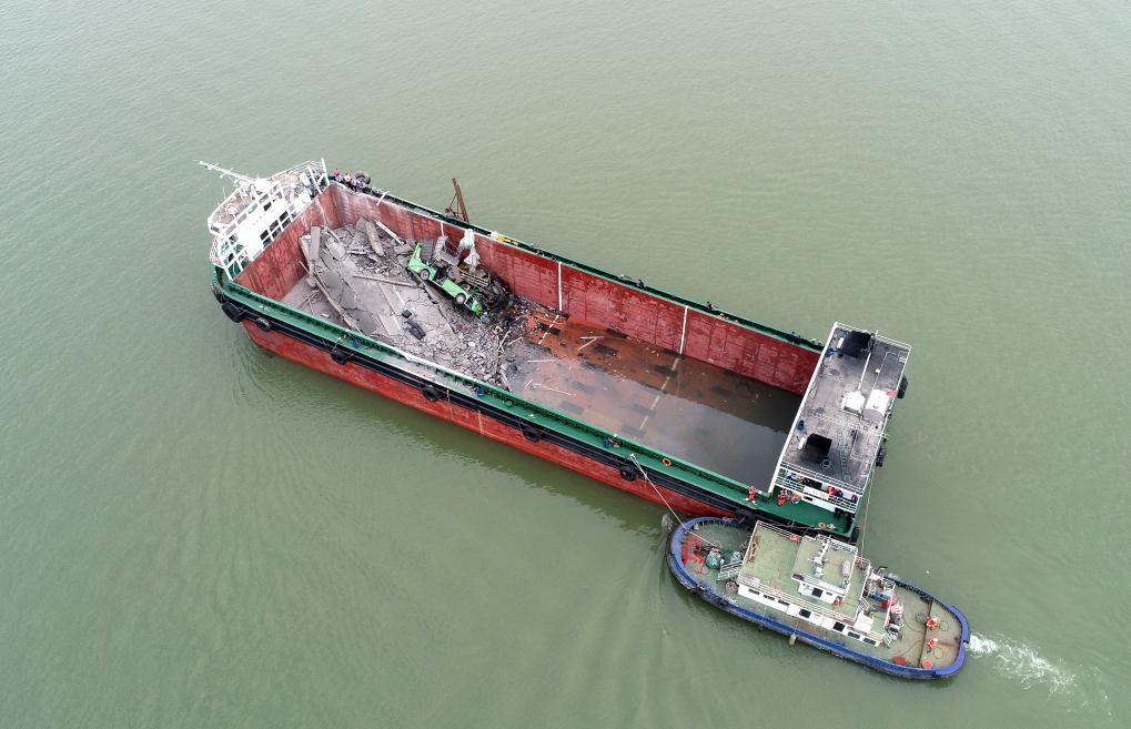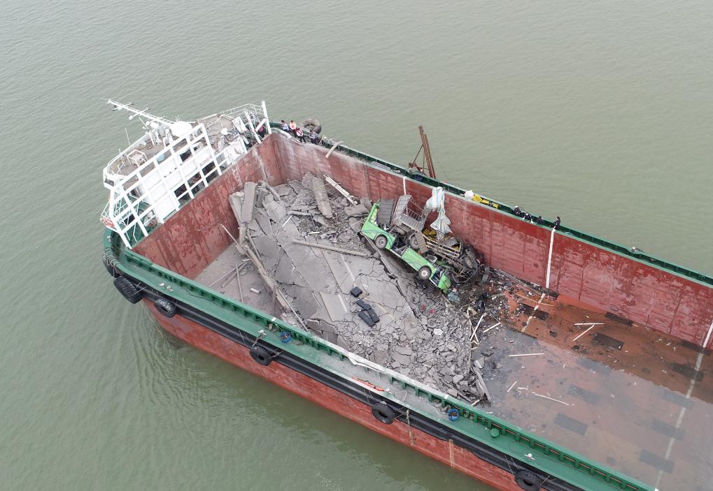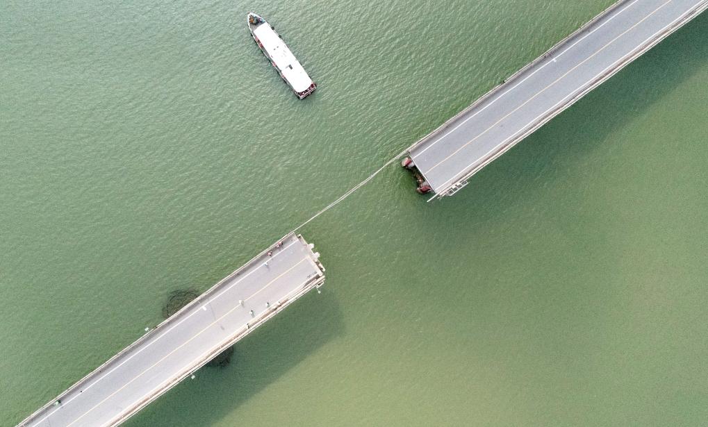 2月22日拍攝的瀝心沙大橋事故現(xiàn)場(無人機照片)。