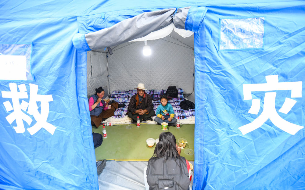 3月17日,在四川省雅江縣城關(guān)第一完全小學(xué)安置點,受災(zāi)群眾正在吃晚飯。新華社記者 王曦 攝