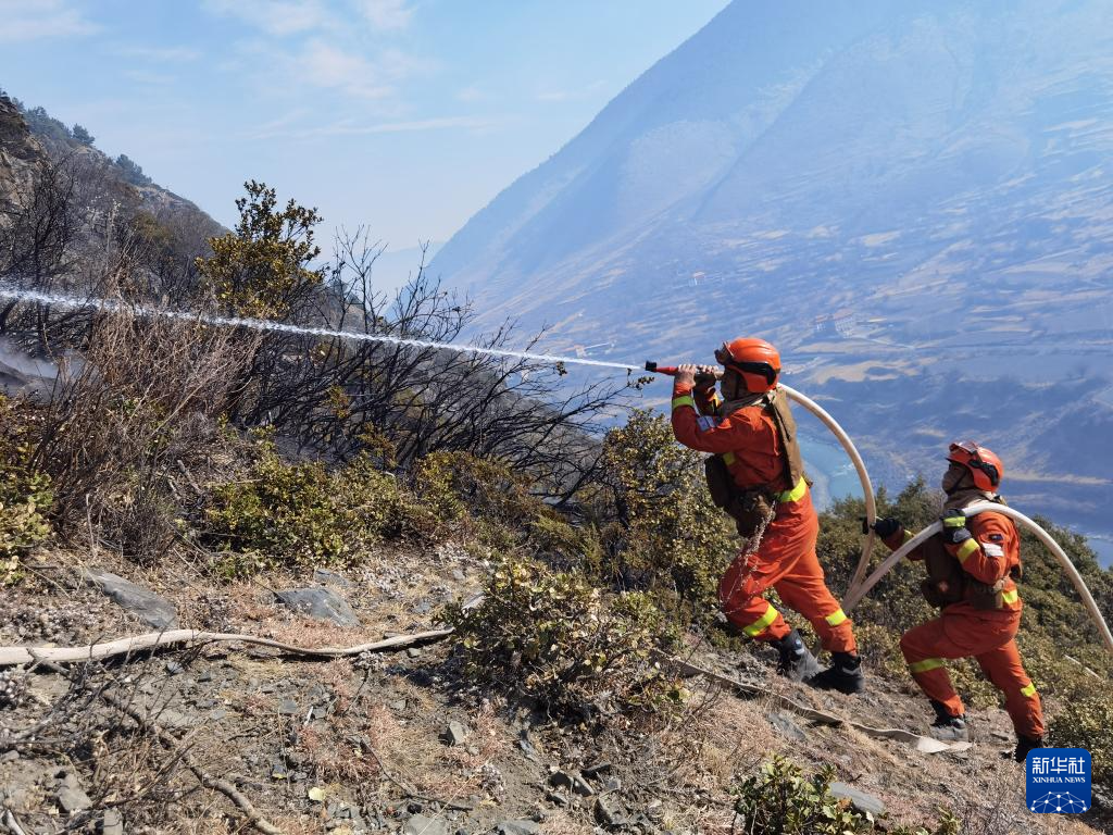 3月17日,消防救援人員在四川省甘孜藏族自治州康定市沙德鎮(zhèn)展開火災(zāi)撲救工作。