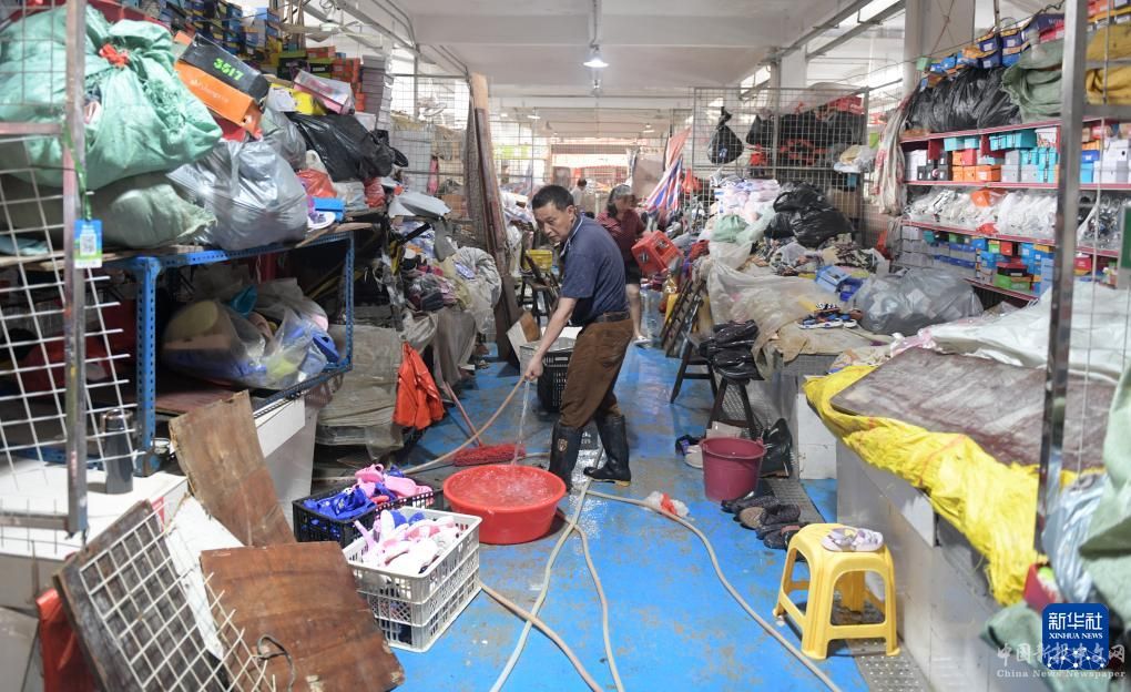 4月21日,洪水過后,廣東省韶關(guān)市武江區(qū)龍歸鎮(zhèn)的居民在清理店鋪。