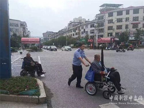 據(jù)悉,這名腿部殘疾老人七十多歲,這天開(kāi)著自己老人車上街辦事,沒(méi)想到車子行駛到湘粵路與南平路紅綠燈處時(shí),因車子電用完了導(dǎo)致熄火。此時(shí),老人非常著急,因?yàn)樽约耗_又不能行走,坐在車上四處張望求助,準(zhǔn)備打電話叫車來(lái)拉走。這一幕剛好被上路值勤的藍(lán)山縣公安局交警大隊(duì)大隊(duì)長(zhǎng)龍慶鋒發(fā)現(xiàn),了解相關(guān)情況后,他一邊安排其他交警把老人送到安全地方,一邊聯(lián)系老人的家人,使老人擺脫困境平安回家。