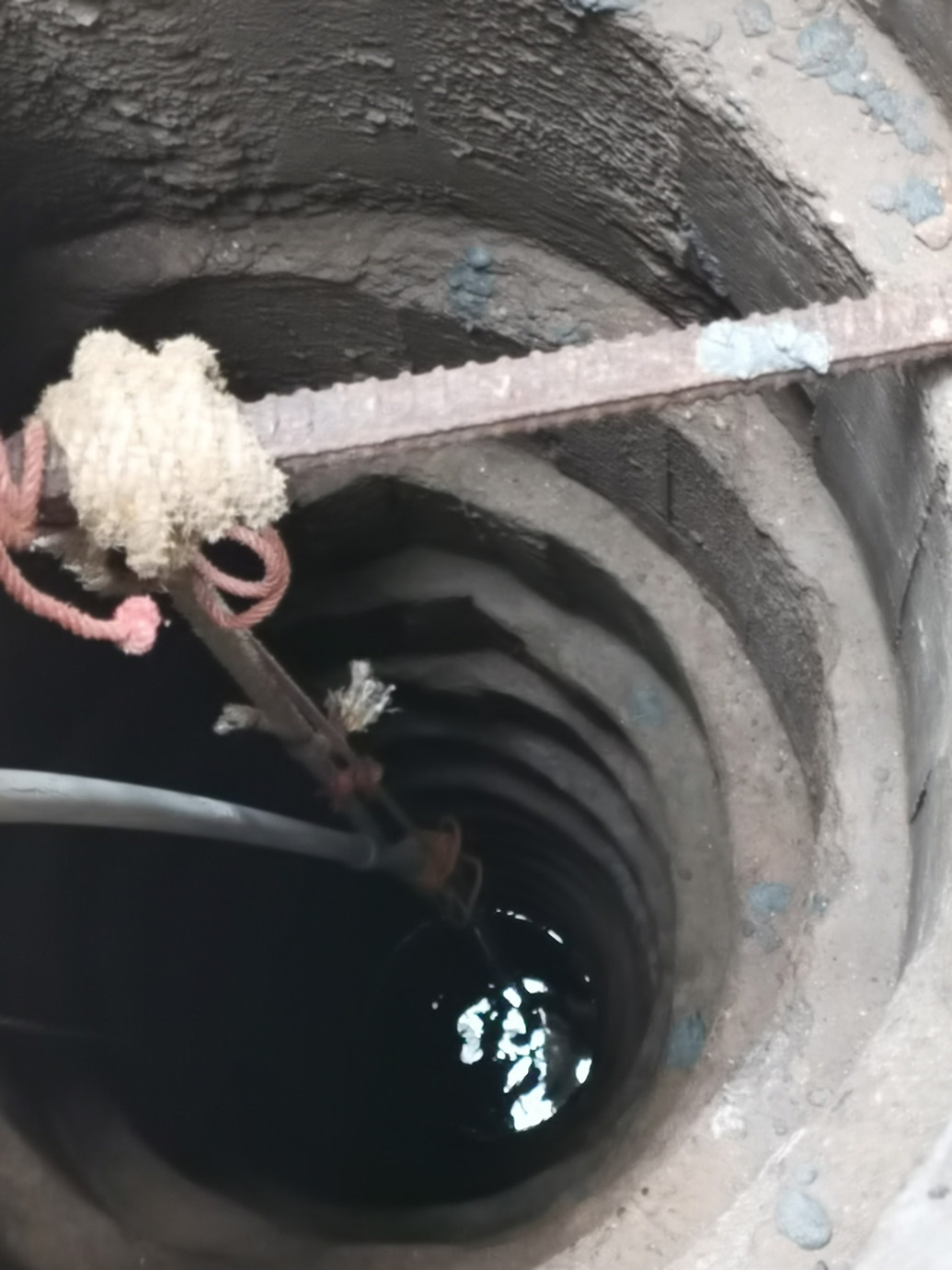 4月中旬的污染事件發(fā)生后,鄉(xiāng)村組織村民對(duì)八公分村的水井進(jìn)行清洗。參與清洗的村民黃水華介紹,當(dāng)時(shí)抽水機(jī)從老井抽水,“才抽了幾分鐘,好像就有豬屎浮上來(lái)。很臭,大家都戴著口罩。”清洗現(xiàn)場(chǎng)的照片顯示,井下部位的水呈現(xiàn)黑色。