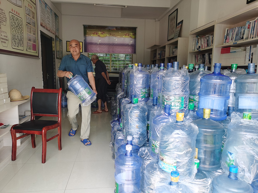 目前,八公分村的老井飲水區(qū)仍未“解封”,村民依然每天到村部領(lǐng)取桶裝純凈水。