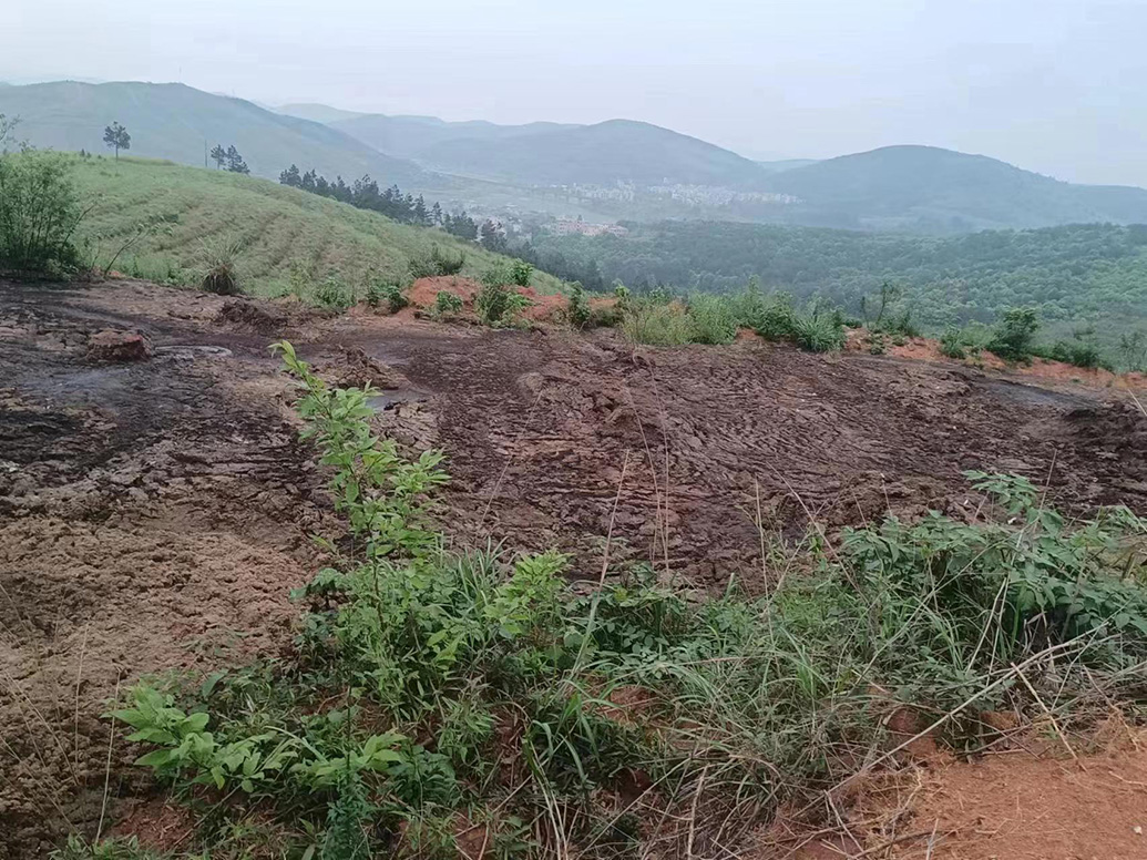4月15日,村民拍攝到的山坡上的糞渣。 受訪者供圖