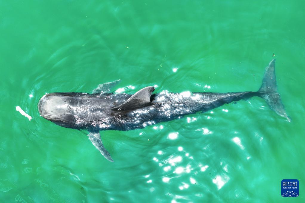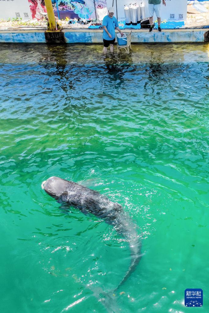 海南三亞因擱淺被救助的短肢領航鯨即將被放歸大海