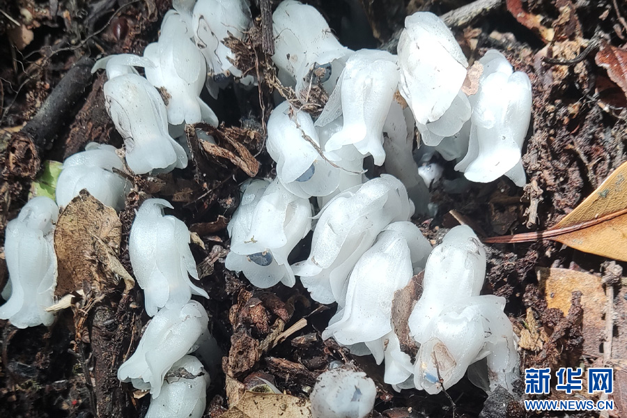 保護(hù)區(qū)內(nèi)發(fā)現(xiàn)的水晶蘭(5月24日攝)。新華網(wǎng)發(fā)(鳳慶縣融媒體中心供圖)