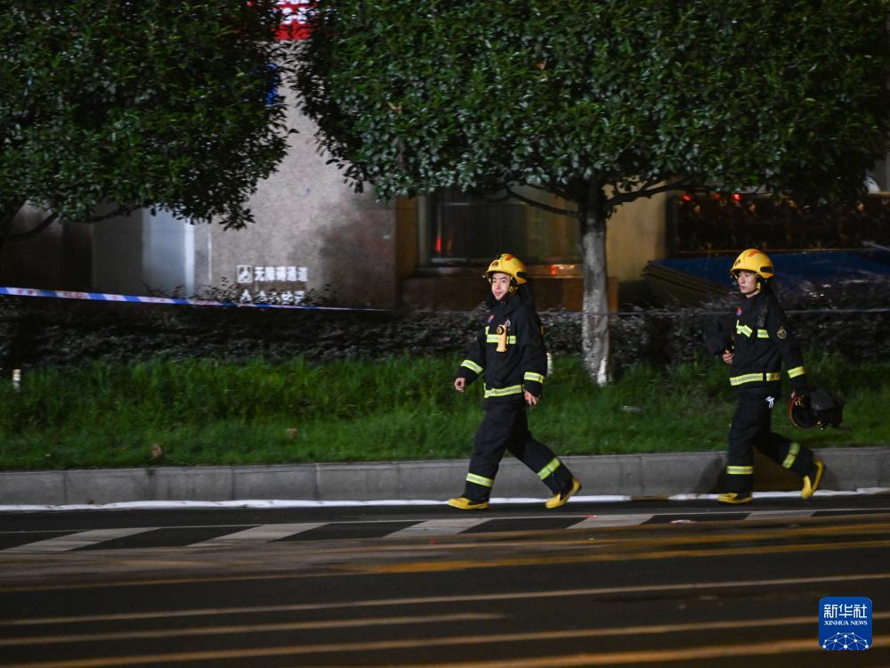 7月18日凌晨,消防救援人員在四川省自貢市“7·17”火災(zāi)事故現(xiàn)場開展救援工作。新華社記者 王曦 攝