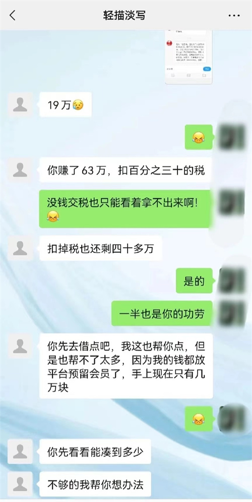 奇怪的是,接下來還是不能提現(xiàn)。這時,姜先生又張口了:需要再交總額30%的費用,才可以提現(xiàn),也就是68.9萬元的30%。