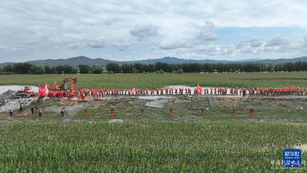 8月14日,內(nèi)蒙古赤峰市老哈河堤防潰口合龍(無人機(jī)照片)。