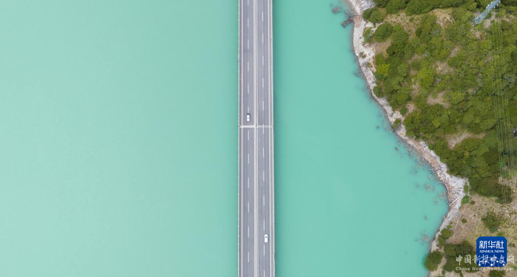 橫跨在西藏林芝市境內(nèi)尼洋河上的林芝至拉薩高等級(高速)公路(9月5日攝,無人機(jī)照片)。