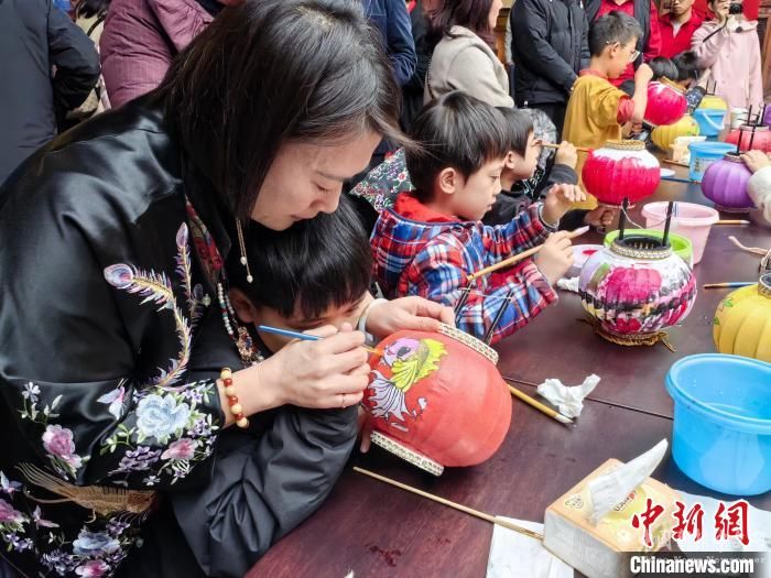 “注意顏料不要涂到黑線外;花朵可以按你喜歡的顏色涂,這里的葉子我們涂成綠色……”2月24日,元宵佳節(jié),在榕臺胞、兩岸婚姻家庭代表等百余人歡聚福州臺灣會館,在嵐(平潭的簡稱)臺傳統(tǒng)燈籠傳承人康桂箖指導(dǎo)下,臺胞子女變身“小燈匠”,畫出色彩斑斕的燈籠。