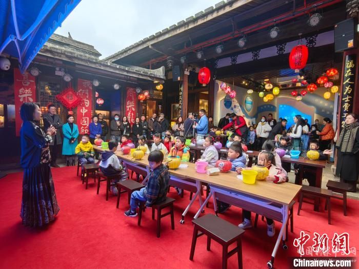 2月24日,福州臺灣會館,嵐臺傳統(tǒng)燈籠傳承人康桂箖正指導(dǎo)臺胞子女們畫燈籠?!≈行律缬浾?閆旭 攝