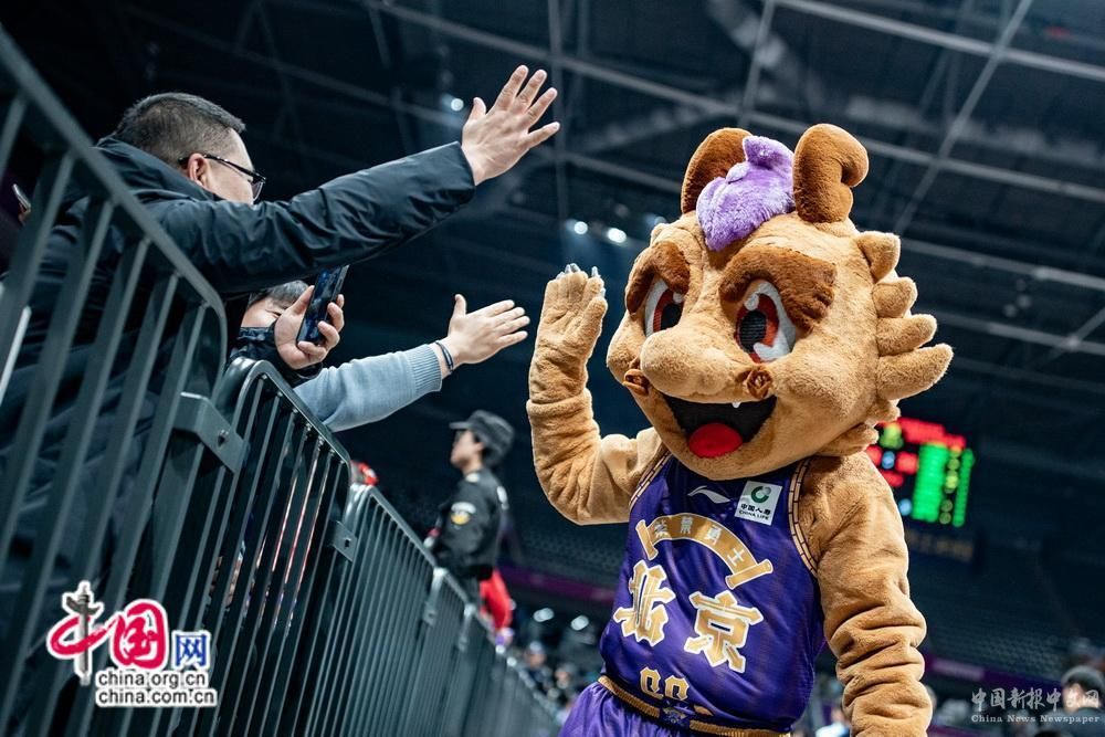 12月30日, CBA常規(guī)賽第23輪,北京控股男籃主場(chǎng)以100比92戰(zhàn)勝南京隊(duì)。圖為北控隊(duì)吉祥物與觀眾互動(dòng)。中國網(wǎng)記者 鄭亮攝