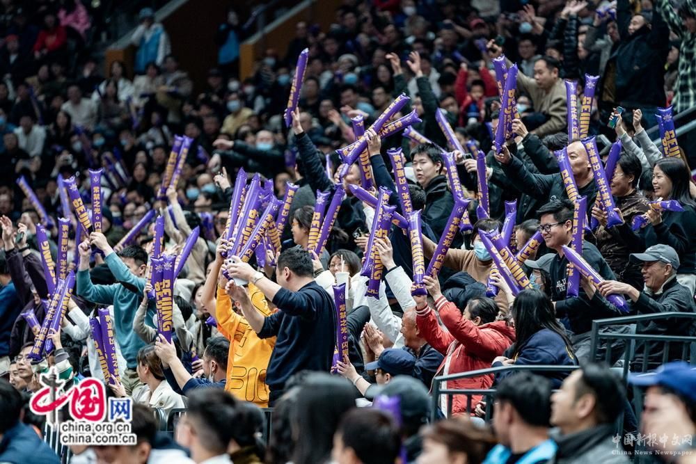 12月30日, CBA常規(guī)賽第23輪,北京控股男籃主場(chǎng)以100比92戰(zhàn)勝南京隊(duì)。圖為現(xiàn)場(chǎng)觀眾慶祝球隊(duì)取得三連勝。中國網(wǎng)記者 鄭亮攝