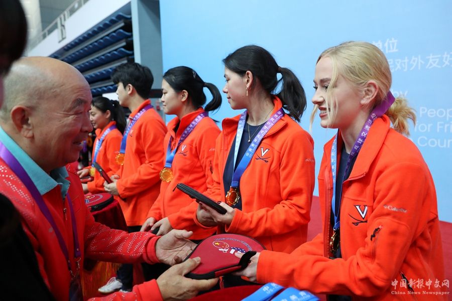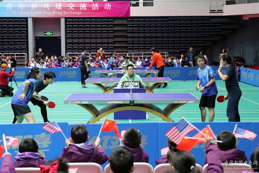 在中美建交45周年之際,北京市對外友協(xié)邀請美國弗吉尼亞大學(xué)代表團一行18人于1月4日至8日到訪北京,并聯(lián)合市體育局共同舉辦以“重走乒乓路·一起向未來”為主題的“中美青年乒乓球交流活動”。1月6日,中美球員聯(lián)合組隊進行男女混合雙打,兩國青年共同合作、攜手拼搏的生動場景迎來體育場內(nèi)陣陣歡呼與掌聲。