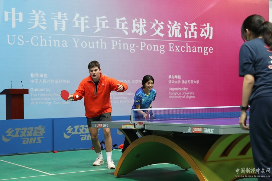 中國日報1月7日電(記者 王壯飛)2024年1月6日,北京,一場別開生面的中美青年乒乓球友誼賽在清華大學(xué)綜合體育館打響,來自美國弗吉尼亞大學(xué)和清華大學(xué)的乒乓球愛好者帶來“友誼第一、比賽第二”的精彩對決。