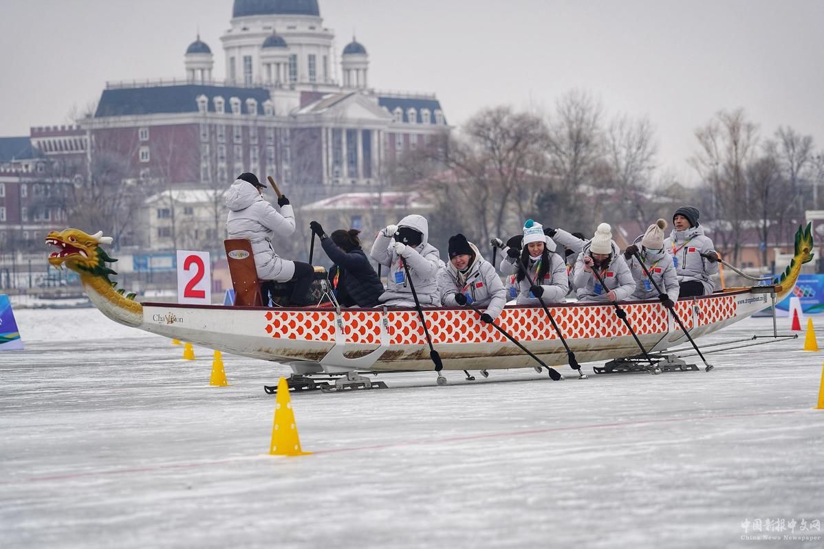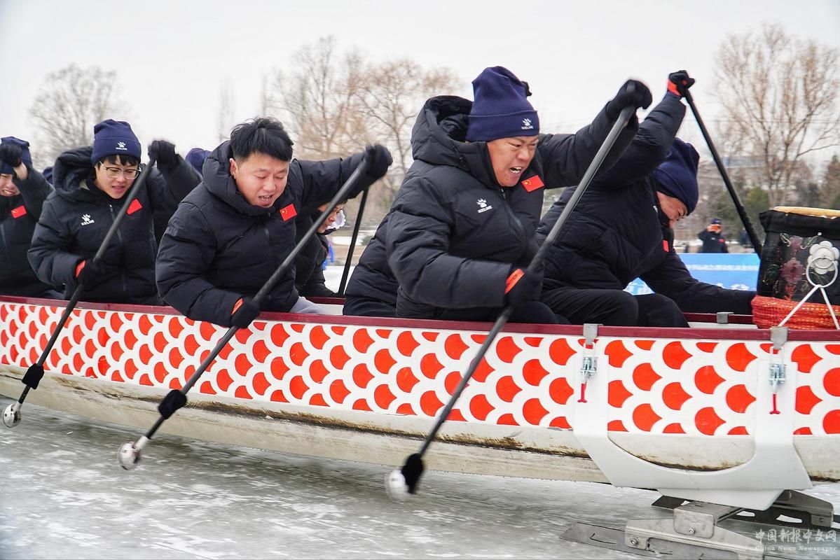 中國日報1月13日電 2024年1月13日,北京市第二屆冬季運動會(群眾組)冰龍舟項目比賽在延慶區(qū)夏都公園開賽。比賽為期1天,設置100米直道和200米直道兩個競賽項目,共有來自全市東城、西城、朝陽、豐臺、門頭溝、順義、大興、延慶8個區(qū)的31支冰龍舟隊,近200名運動員參賽。