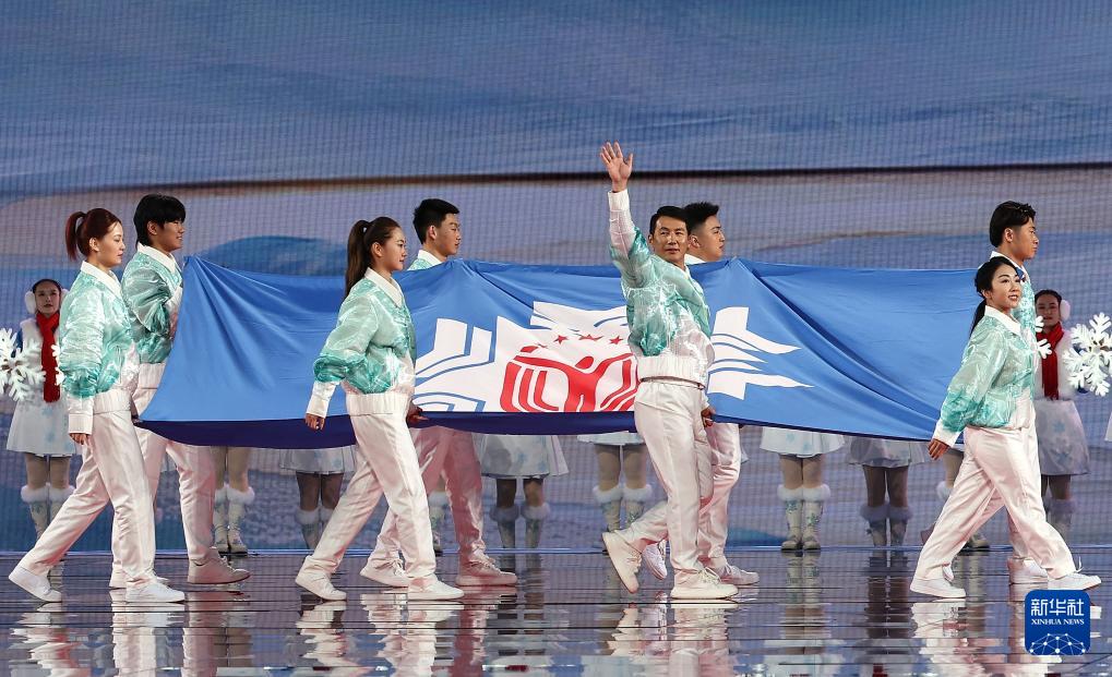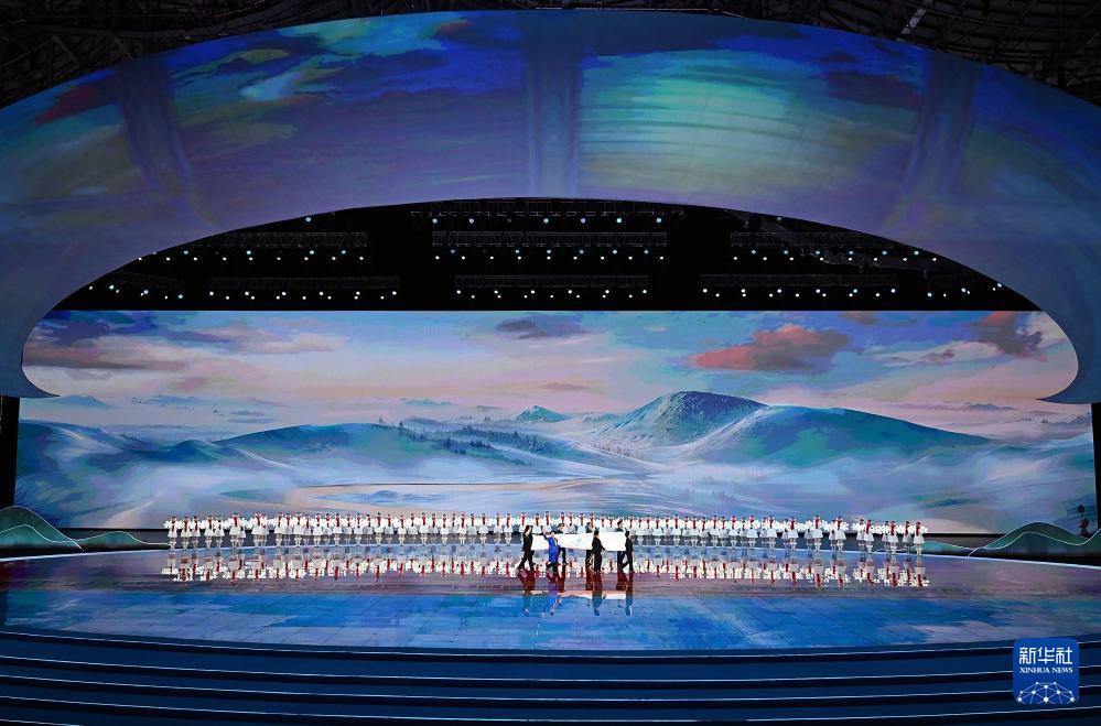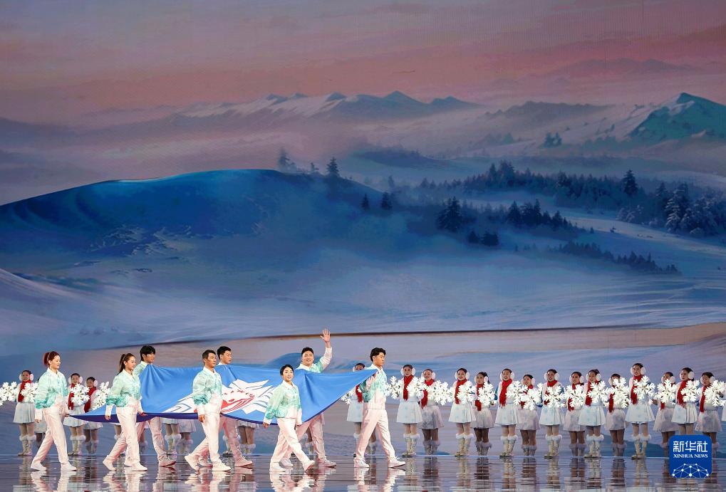 當(dāng)晚,第十四屆全國冬季運(yùn)動會開幕式在內(nèi)蒙古呼倫貝爾市海拉爾區(qū)內(nèi)蒙古冰上運(yùn)動訓(xùn)練中心舉行。