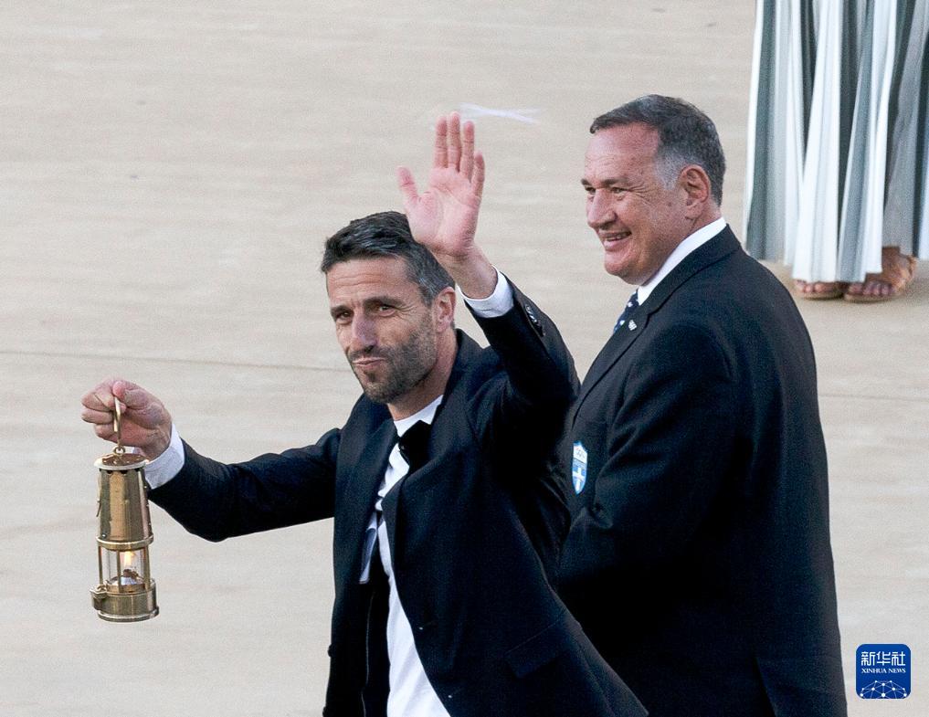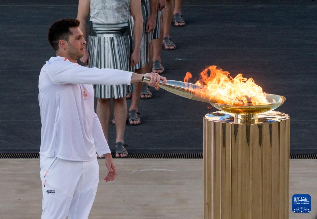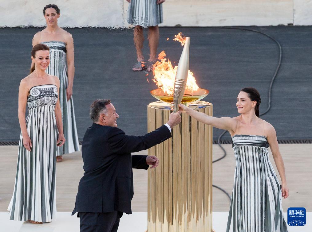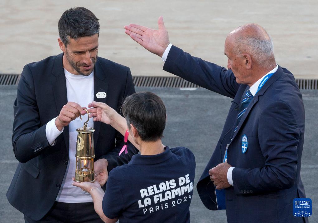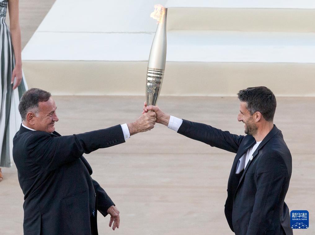 當(dāng)日,巴黎奧運會火種在希臘首都雅典帕納辛奈科體育場,由希臘奧委會正式交給巴黎奧組委,巴黎奧組委主席托尼·埃斯坦蓋從希臘奧委會主席卡普拉洛斯手中接過奧運火炬。