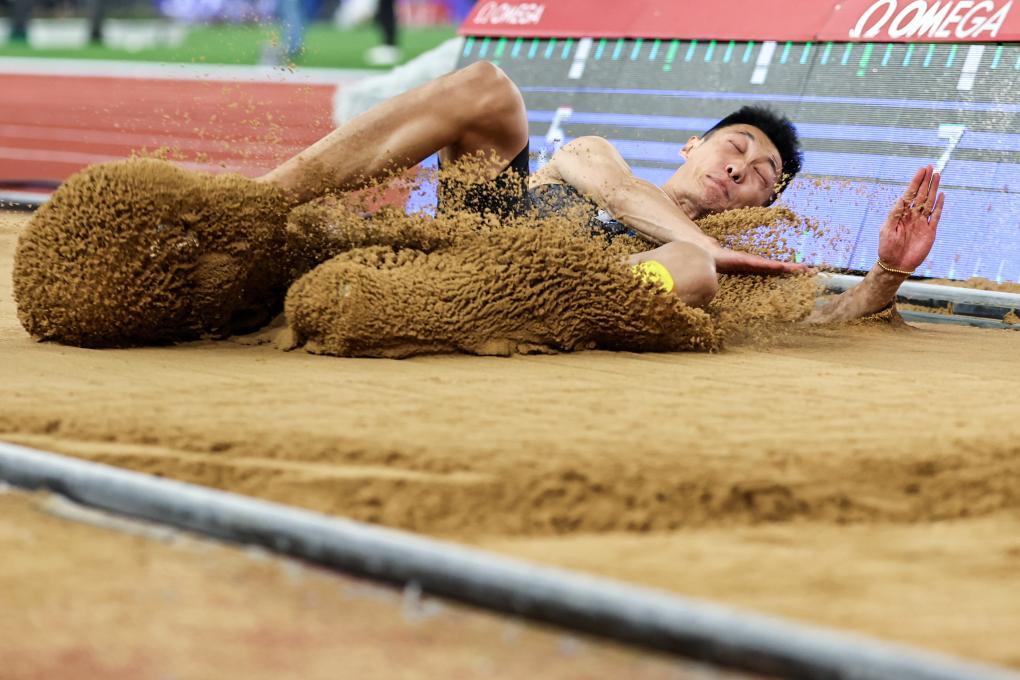 4月27日,中國(guó)選手王嘉男在男子跳遠(yuǎn)決賽中。新華社記者 李博 攝
