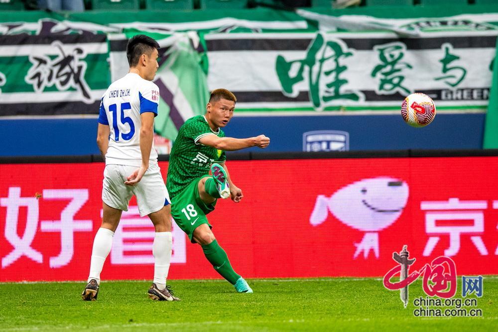 5月11日,2024賽季中超聯(lián)賽進行第11輪,北京國安隊在主場以3比2逆轉(zhuǎn)梅州客家隊,豪取五連勝。圖為北京國安隊隊員邊線傳中。中國網(wǎng)記者 鄭亮 攝影