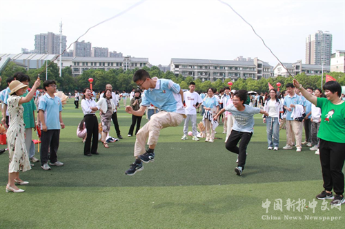 第二階段為歡樂(lè)運(yùn)動(dòng)會(huì)。此次歡樂(lè)運(yùn)動(dòng)會(huì)活動(dòng)以班級(jí)為單位,開(kāi)展了“毛毛蟲(chóng)賽跑”“跳長(zhǎng)繩”等趣味體育減壓活動(dòng)。活動(dòng)展示了班級(jí)團(tuán)隊(duì)的力量,同學(xué)們體驗(yàn)了相互支持、相互配合的樂(lè)趣?;顒?dòng)中人人興致昂揚(yáng),各班師生齊心協(xié)力,默契配合,傾情投入,歡聲笑語(yǔ)回蕩在運(yùn)動(dòng)場(chǎng)上空。