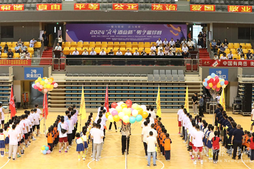 2024年“雁峰酒業(yè)杯”珠暉區(qū)男子籃球賽在衡陽市體育中心開幕。(謝鑫 攝)