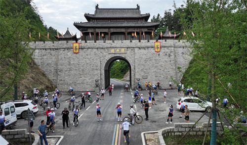 2024年6月1日清晨,近百名騎行愛好者抵達(dá)安徽省合肥市廬江縣冶父山國家級(jí)森林公園景區(qū)許山關(guān),體驗(yàn)騎行快樂,暢游自然風(fēng)光。(巢志斌 攝)