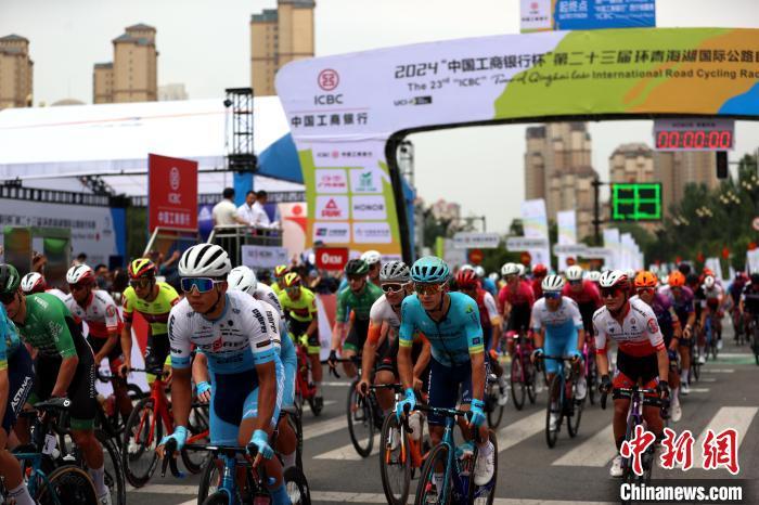 2024第二十三屆環(huán)青海湖國際公路自行車賽7月7日在青海省西寧市打響揭幕戰(zhàn),參賽車手從起點出發(fā)。2024“中國工商銀行杯”第二十三屆環(huán)湖賽第一賽段西寧繞圈賽,比賽距離121公里(13.4公里/圈*9圈)共設(shè)三個途中沖刺點(第3、5、7圈)。兩個四級爬坡(24.7km處、51.5km處)。獲得本賽段前三名的是:第一名來自比利時歐倍青-德科尼克車隊的14號延森-普羅萊特(PLOWRIGHT Jensen),第二名來自意大利巴迪亞尼車隊67號恩里科-扎農(nóng)切洛(ZANONCELLO Enrico),第三名來自荷蘭帕克赫特爾車隊102號杰斯泊(RASCH Jesper )。中新社 記者 薛蒂 攝