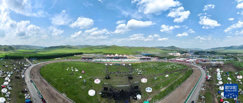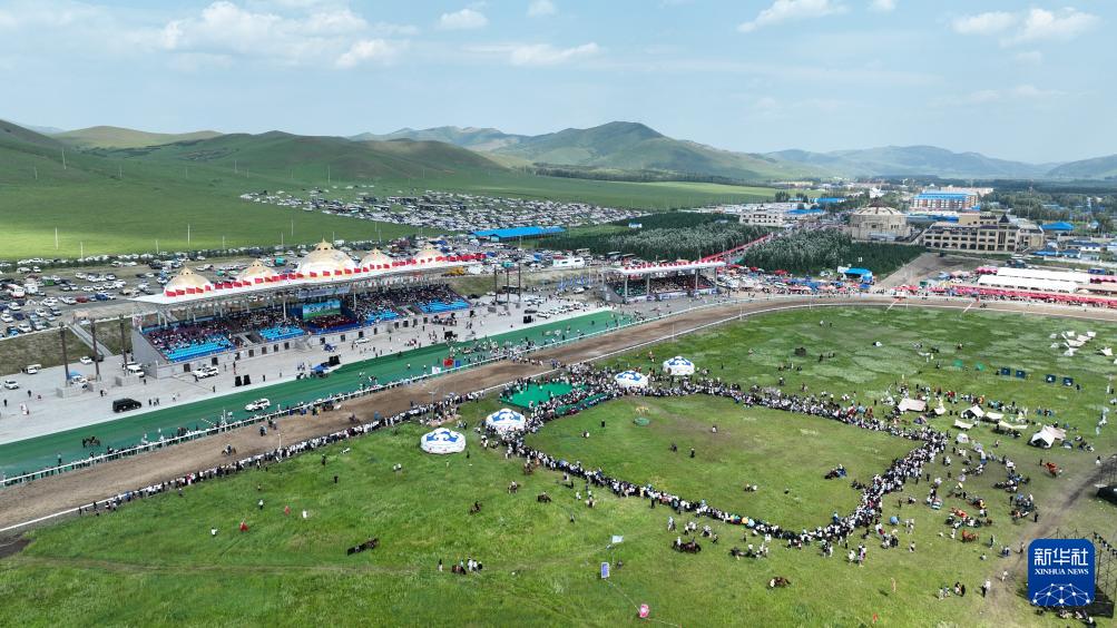 這是7月17日在烏蘭毛都蘇木民族體育綜合訓練基地拍攝的活動現(xiàn)場(無人機照片)。