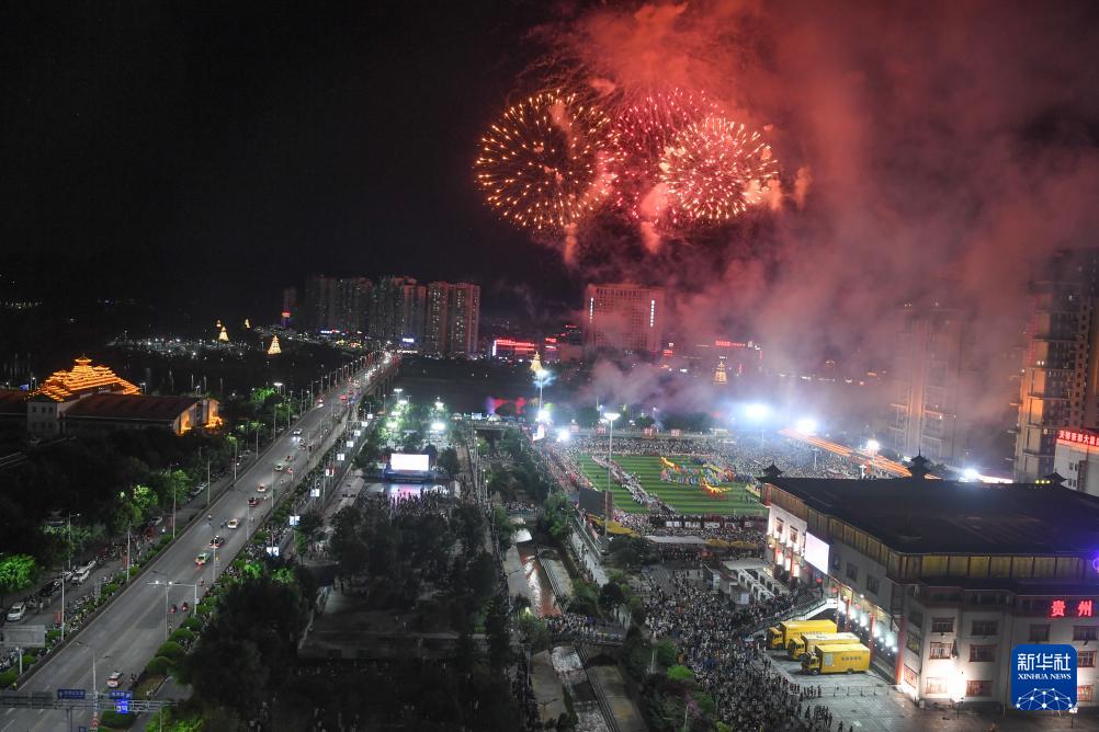 這是7月20日拍攝的2024年貴州“村超”總決賽煙花表演。