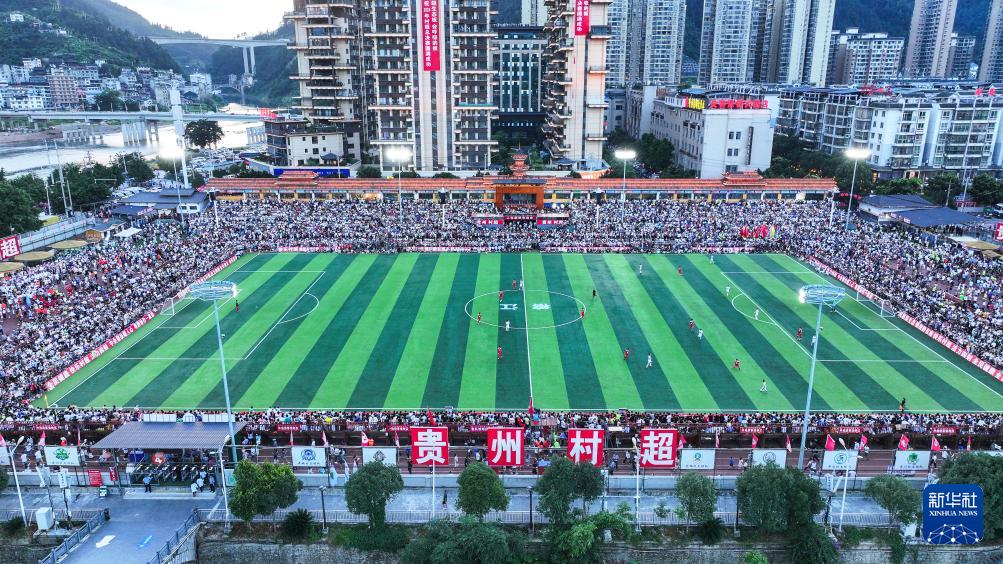 這是2024年貴州“村超”總決賽現(xiàn)場(7月20日攝,無人機(jī)照片)。