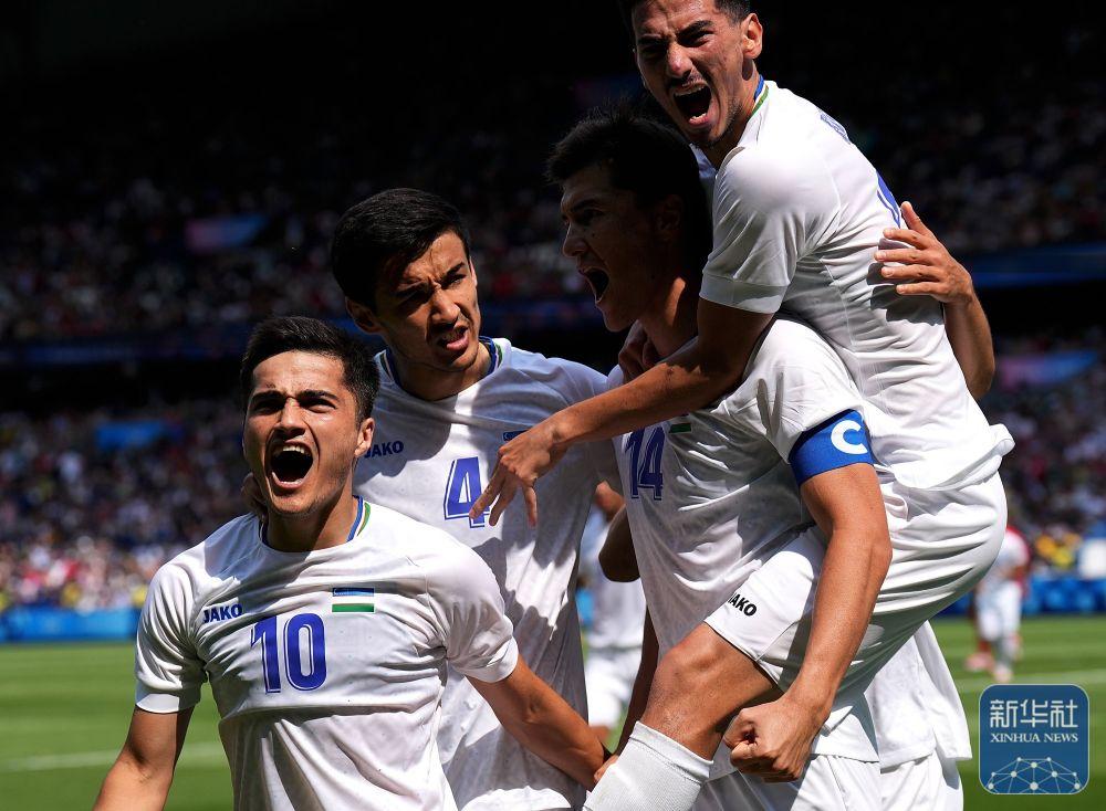 烏茲別克斯坦隊球員在比賽中慶祝進(jìn)球。新華社記者 李一博 攝