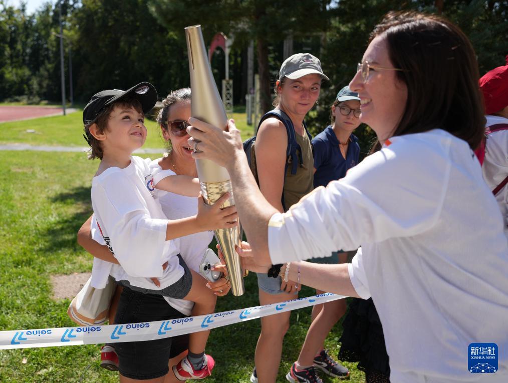 8月27日,一名小朋友觸摸火炬。新華社記者 賀燦鈴 攝