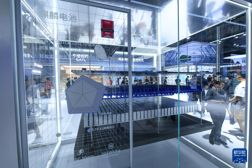 8月30日在第二十七屆成都國際汽車展覽會寧德時代展臺拍攝的麒麟電池。