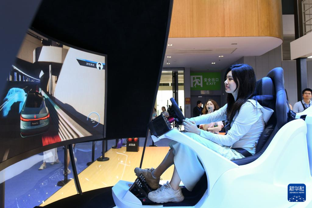 8月30日,參觀者在第二十七屆成都國際汽車展覽會體驗?zāi)M駕駛。