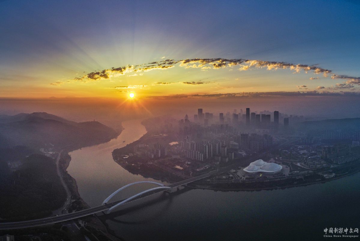 1月1日,在廣西南寧拍攝的新年第一縷陽光。彭寰 攝