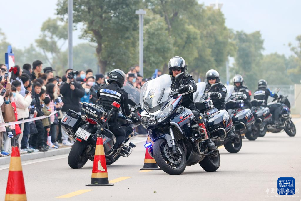 1月7日,市民在浙江省舟山市公安局舉行的警營開放日活動現(xiàn)場觀看警用摩托車表演。