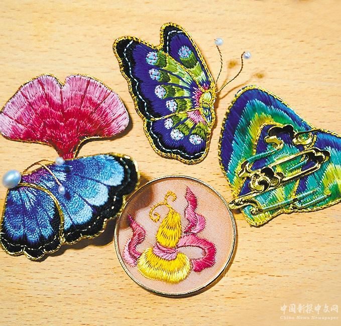 京繡傳承人劉曉燕制作的絨繡胸針。