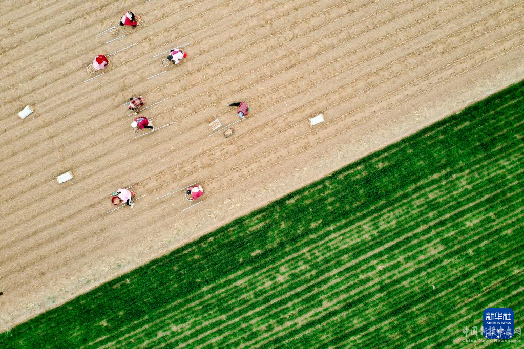 3月17日,河南省焦作市溫縣黃莊鎮(zhèn)南韓村農(nóng)民在田間種植鐵棍山藥(無(wú)人機(jī)照片)。