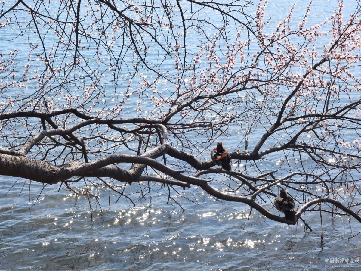 3月20日,北海公園,盛開的山桃花與白塔相映成趣。中國日?qǐng)?bào)記者 姜東 攝