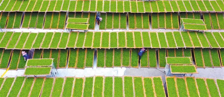 員工在福建福鼎市前岐鎮(zhèn)小岳村晾曬白茶。福鼎是中國(guó)白茶之鄉(xiāng),茶產(chǎn)業(yè)是當(dāng)?shù)剜l(xiāng)村全面振興的支柱產(chǎn)業(yè)。王旺旺攝(中經(jīng)視覺(jué))