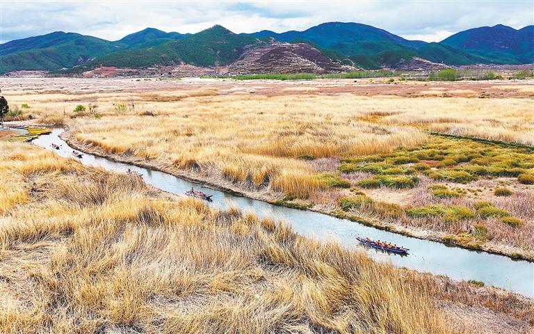 4月1日,游客在四川省鹽源縣瀘沽湖草海濕地乘船游覽?! ⒉蓴z  ?。ㄖ薪?jīng)視覺)